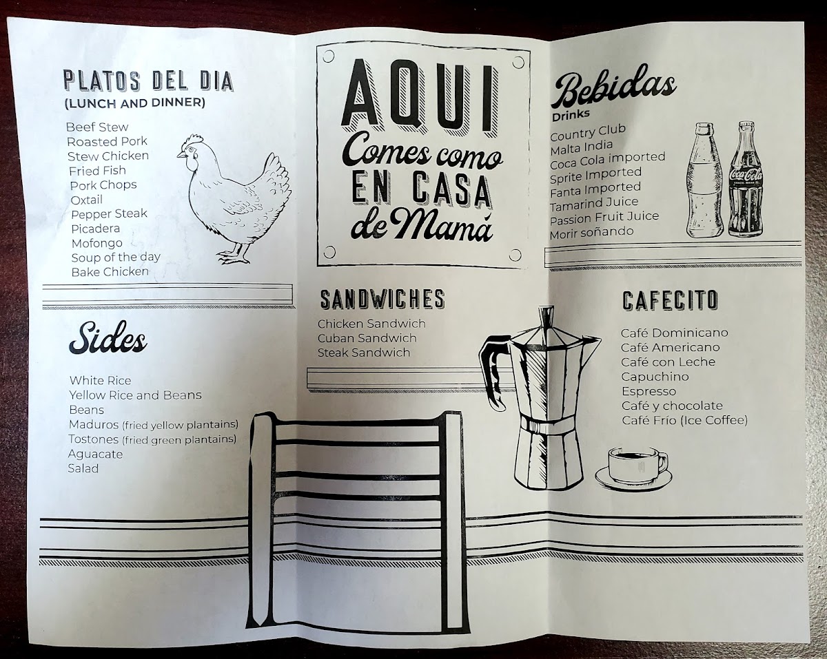 The menu showcases a variety of enticing options. Start your day with breakfast platters like the Bacon Omelette or Cheese Omelette, both served with delicious fries and toast, priced between $6.00 and $7.00. Don't miss the savory Cubano Sandwich or the Patacon Sandwich available for $10.00.